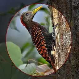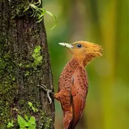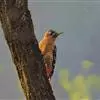 栗啄木鸟:是一种红褐色啄木鸟,体长21厘米。雄性成鸟整个头棕色,…