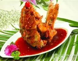 2.锅内放沙拉油2大匙,烧至三成热,放入蒜蓉炒出香味,加入生抽,清水,砂糖,鸡精煮开。