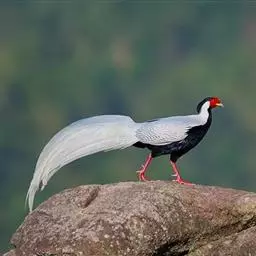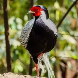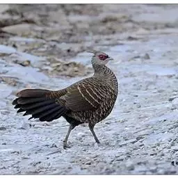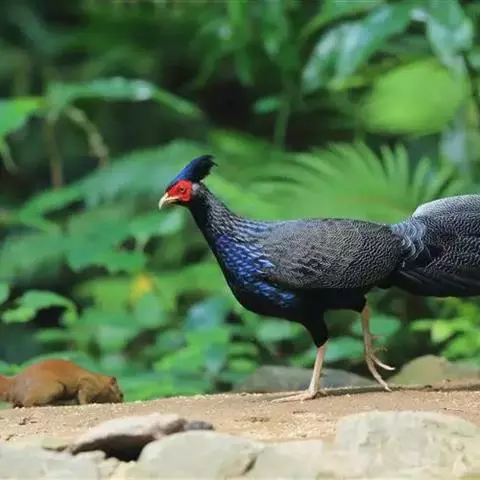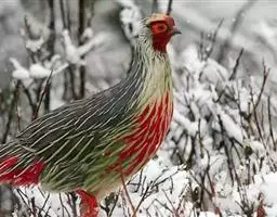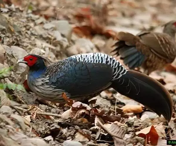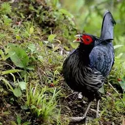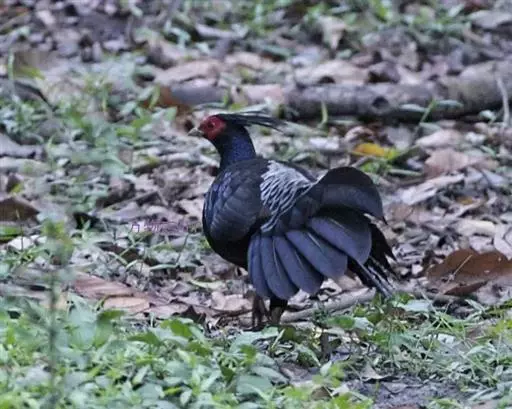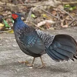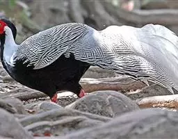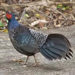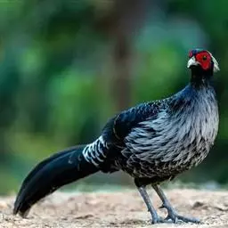 黑鹇(学名:Lophura leucomelanos),大型鸡类,体长56-60厘米。雄鸟上体呈黑褐色,背羽具有黑紫色金属光泽。头顶有黑色羽冠。脸部裸皮呈红色,并散生有稀疏的黑色纤羽。尾部长而侧扁,中央两对尾羽呈红褐色,其余为黑褐色。下体多为暗褐色。胸羽呈披针形,各羽羽干为白色,并杂有淡灰色。嘴为黄褐色,基部稍黑。脚和爪为灰色或铅褐色。雌鸟体羽为棕褐色,并杂有不规则的黑褐色斑。