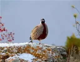 仅见于海拔2300-3300米高的山地森林,有时也到低山及山谷箭竹丛及林间草丛中,也常见于低山丘陵和山谷地带。成对或成家族群活动。主要以植物嫩叶、芽苞和种子为食,也吃部分昆虫。繁殖期为5-6月。每窝产卵5-9枚,卵的颜色为深皮黄粉红色。孵化期为24-25天。分布于印度北部、尼泊尔、缅甸、泰国和中国西南部。