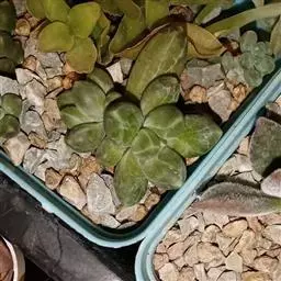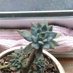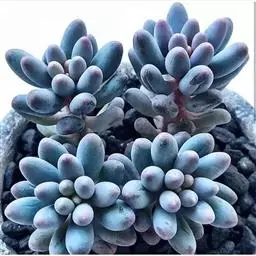 蓝黛莲是一种景天科厚叶草属植物。叶片呈略扁的圆柱形,排列成莲座状;颜色为灰绿色,…