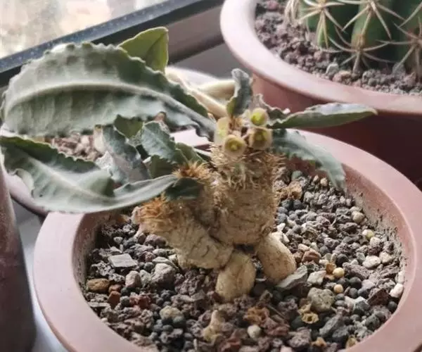 皱叶麒麟原产于非洲东部的马达加斯加岛。宜充足而柔和的光照和温暖、干燥的环境,耐干旱和半阴,忌积水和过于荫蔽。