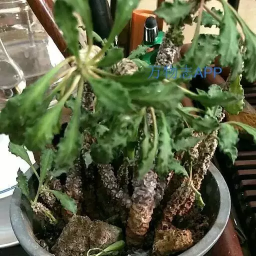 皱叶麒麟因叶子充满起伏的皱褶而得名,是一种充满野趣的小型多肉植物,其株形小巧玲珑,根茎虬曲多姿,皱巴巴的叶子簇生于枝头。除单独盆栽观赏,还是制作盆景小品。