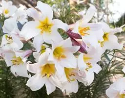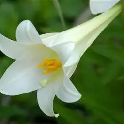 麝香百合(学名L. longif forum Thunb. ),又名铁炮百合、复活节百合,是花卉百合的代表品种,花朵纯白,筒状,横向开放。原产我国台湾。
