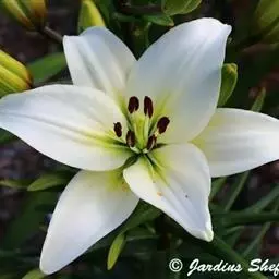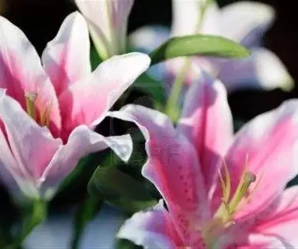 百合花姿雅致,叶片青翠娟秀,茎干亭亭玉立,是名贵的切花新秀。 重瓣百合