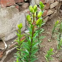 二是适时打顶,春季百合发芽时应保留其一壮芽,其余除去,以免引起鳞茎分裂。在小满前后,当苗高长至27-33厘米时,及时摘顶,控制地上部分生长,以集中养份促进地下鳞茎生长。对有珠芽的品种,如不打算用珠芽繁殖,应于芒种前后及时摘除,结合夏季摘花,以减少鳞茎养分消耗。最适时机是:当花蕾由直立转向低垂时,颜色由全青转为向阳面出现桃红色时。时间是6月份。
