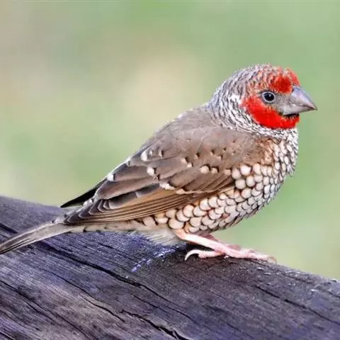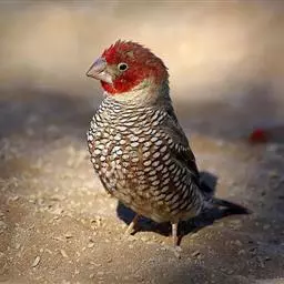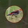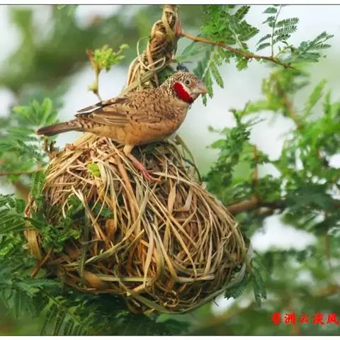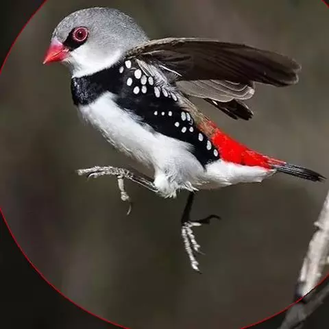 红梅花雀小型鸟类,体长9-10厘米。雄鸟通体朱红色,背、肩、胸等满布白色小斑点,…
