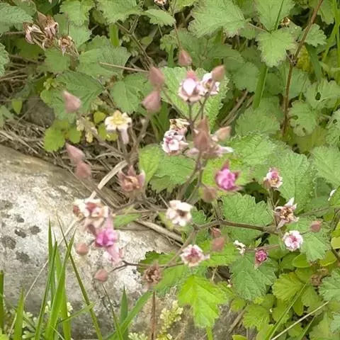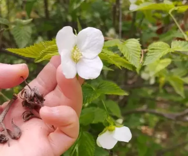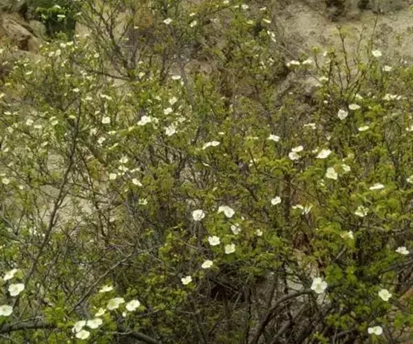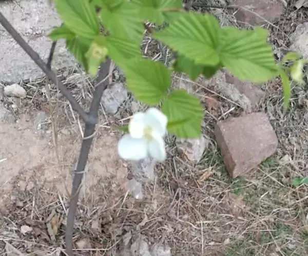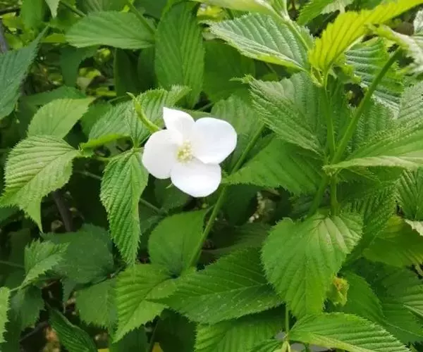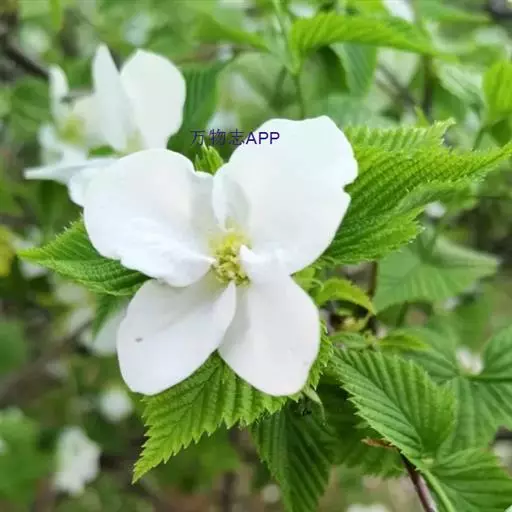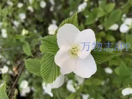 单花顶生于新梢上;花直径3-5厘米;萼片大,卵状椭圆形,顶端急尖,边缘有锐锯齿,外面被稀疏绢状柔毛,副萼片细小,狭带形,比萼片短4-5倍;花瓣白色,倒卵形,比萼片长1/4-1/3倍。