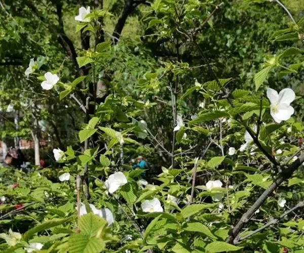 鸡麻株形婆娑,叶片清秀美丽,花朵洁白,适宜丛植,可用于草地、路边、角隅、池边等处造景,也可与山石搭配。