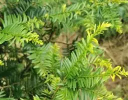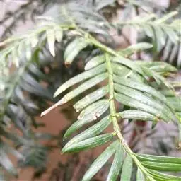 危害后榧叶边缘脱绿成黄褐色似铁锈。