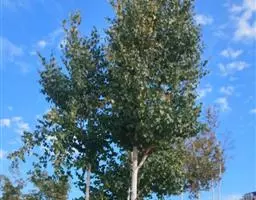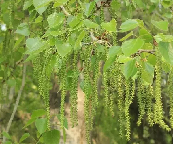 乔木,高15-30米。树皮灰白色,光滑,老时深灰色,纵裂;树冠卵形。小枝较细,暗赤褐色,被柔毛;老枝灰褐色,无毛。芽圆锥形,有粘质,无毛。叶卵状圆形或卵形,长5-15厘米,宽4-7厘米,先端长渐尖,基部截形或心形,稀近圆形或楔形,边缘有内曲圆锯齿,齿端有腺点,上面无毛或沿脉有柔毛,深绿色,光亮,下面灰绿色,幼时被密柔毛;叶柄侧扁,被绒毛或柔毛,长2-8(12)厘米,顶端有2显著腺点。