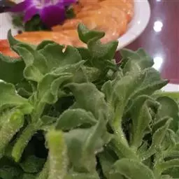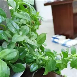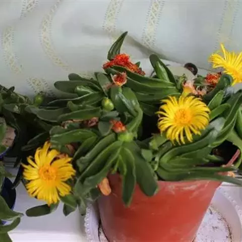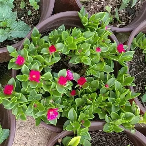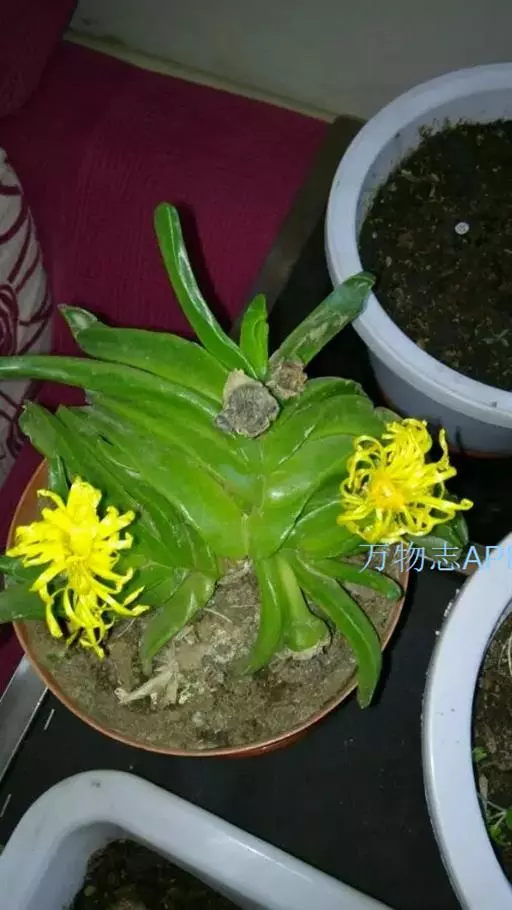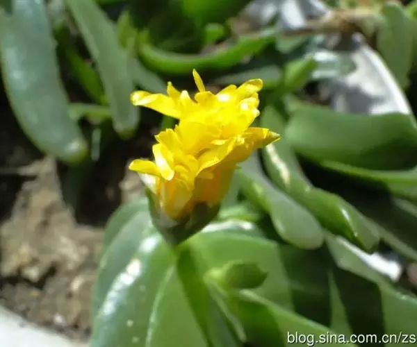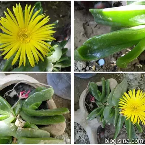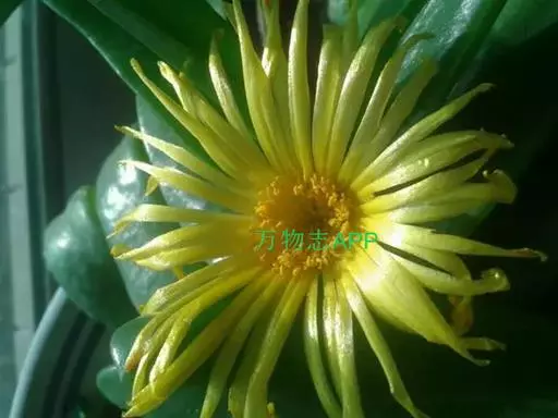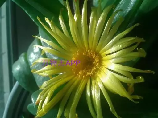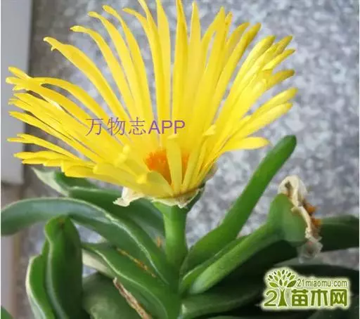 宝绿中文学名弯叶日中花,拉丁文名Mesembryanthemum uncatum Salm-Dyck,又名舌叶花、佛手掌。