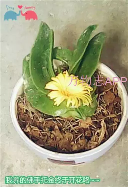 佛手掌叶片肥厚多汁,翠绿透明,形似翡翠,清雅别致。冬季正月开花,花朵金黄色,灼灼耀眼,古分惹人喜爱。佛手掌适宜盆栽,陈设在书桌、窗台、几案、小巧玲珑,非常雅致。