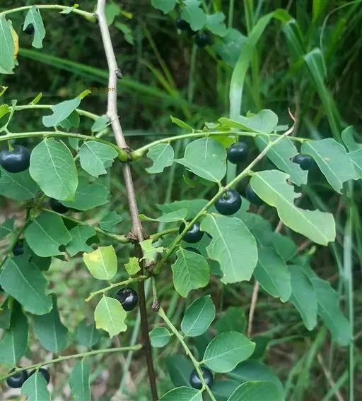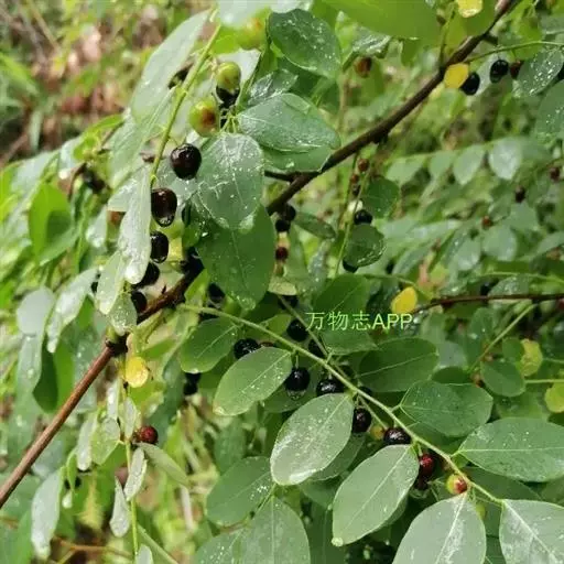 落叶灌木,高2-4cm。枝无毛,小枝细弱。叶互生,具短柄;叶片椭圆形至长圆形,长2-3cm,宽1.4-2cm,先端具小尖头,基部宽楔形或圆形,全缘。花簇生于叶腋;单性,雌雄同株;无花瓣;雄花数朵至10余朵簇生,萼片5-6;雌花通常1朵,生于雄花丛中,子房3室,柱头3。浆果球形,直径6-8mm,紫黑色,具宿存花柱;果柄长4-5mm。花期4-7月,果期7-10月。