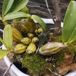 云南石仙桃:根状茎匍匐、分枝,粗4-6毫米,密被箨状鞘,通常相距1-3厘米生假鳞茎;假鳞茎近圆柱状…