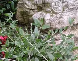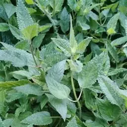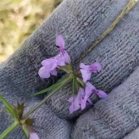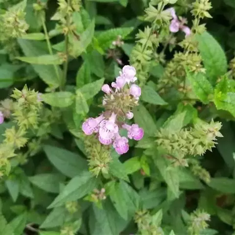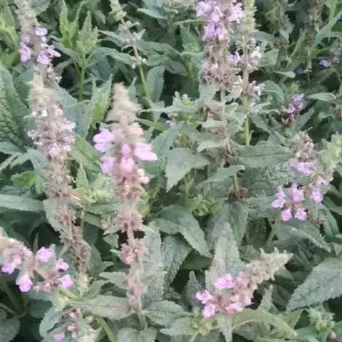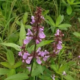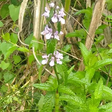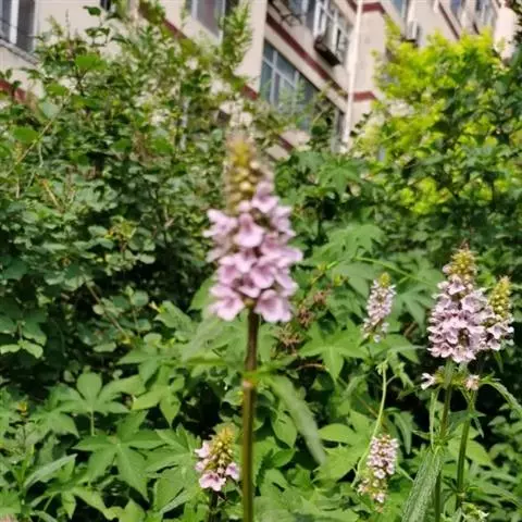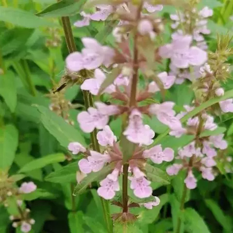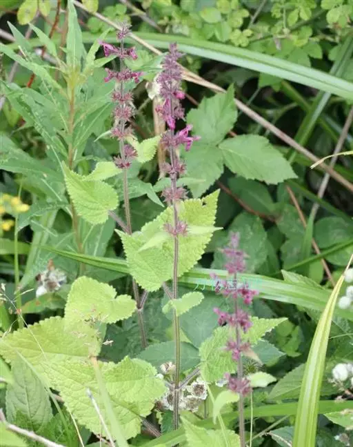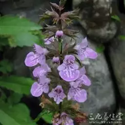 多年生草本,根状茎匍匐,其上密集须根及在顶端有串珠状肥大块茎的横走小根状茎。茎高30-60cm,四棱形,在棱及节上有硬毛。叶对生,卵形或椭圆长卵形式形,长3-10cm,宽1.5-6cm,两面被贴生短硬毛。轮伞花序常6朵花,多数远离,排列成5-15cm顶生假穗状花序。小苞片条形,花萼狭钟形。花冠二唇形,粉红色至紫红色。小坚果卵球形。