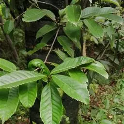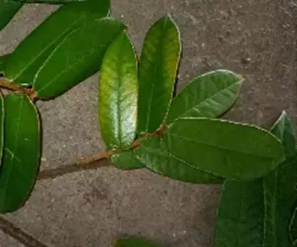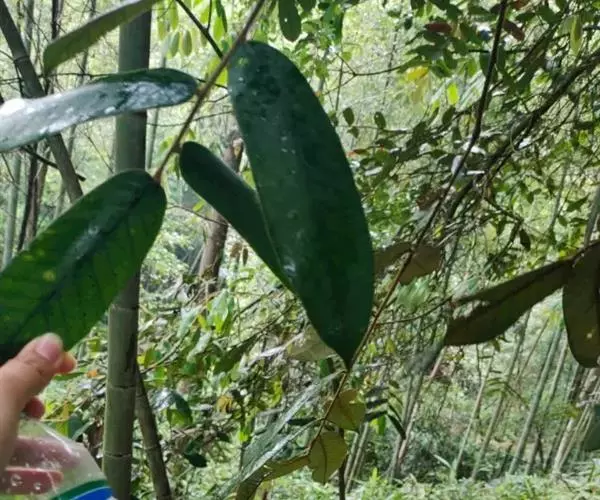 托叶宽卵形, 宽达7毫米,顶端略钝,有多数的纵细脉,常较迟脱落。叶革质,长椭圆形或长圆形,或兼有倒披针状长椭圆形,长9-18厘米,宽3-6厘米,顶端急尖,或甚短尖,稀圆形,基部心形或浅耳垂状,少有圆形,全缘,很少在顶部叶缘有甚浅裂的1-3个细裂齿或浅波浪状,中脉在叶面明显凹陷,侧脉每边14-18条,稀较少,在叶面裂缝状凹陷,网状叶脉明显或纤细,叶背红棕色(嫩叶),棕灰色或灰白色(成长叶);叶柄粗而短,长2-5毫米。