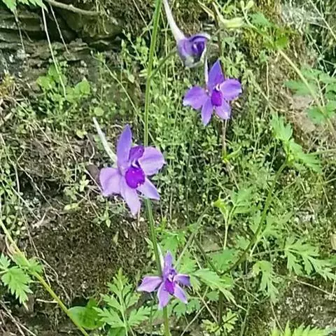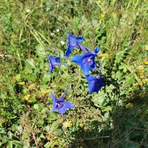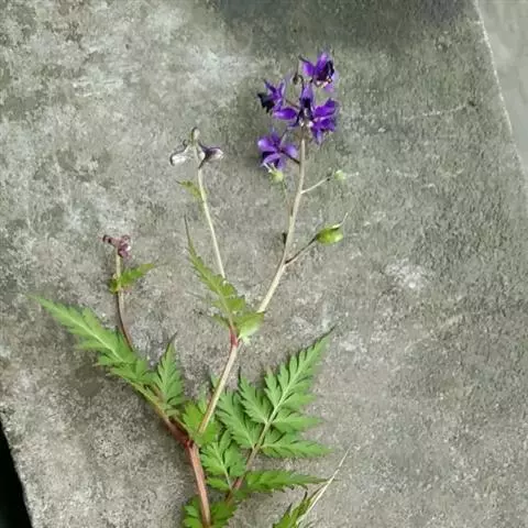 该种与高翠雀花的主要区别是轴及花梗有弯曲和近直展的柔毛,以及黄色短腺毛;苞片线形;花梗向上斜展,长1-1.5厘米;小苞片与花邻接,披针形或披针状线形,长5-10毫米,宽0.7-1毫米,有白色疏柔毛和黄色短腺毛。产新疆阿尔泰山。生海拔1890-2100米间山地一草坡。