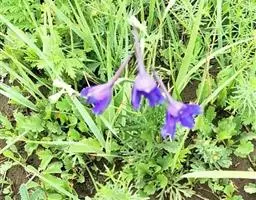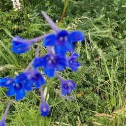 高翠雀花(学名:Delphinium elatum L.)是毛茛科翠雀属多年生草本植物,茎高约130厘米,下部疏被短毛,其他部分近无毛或无毛。地生叶。下部叶在开花时枯萎,叶片五角状肾形,叶柄与叶片近等长,疏被短柔毛。总状花序长达20厘米,有较密集的花;小苞片狭线形或线状钻形,宽约0.3毫米。萼片紫蓝色,卵形或狭倒卵形,花瓣黑色,无毛,顶端钝;退化雄蕊褐色,瓣片宽卵形,7-8月开花。