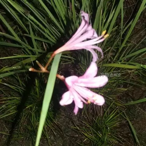 长筒石蒜草本,地生。鳞茎卵球形;叶披针形;伞形花序,有花5-7朵,花白色;花被裂片腹面稍有淡红色条纹,…