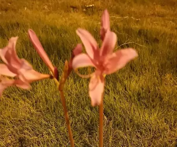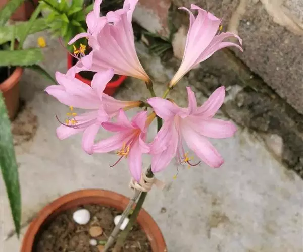 稻草石蒜草本,地生。鳞茎近球形;叶带状;伞形花序,有花5-7朵,花稻草色;花被裂片腹面散生少数粉红…