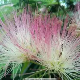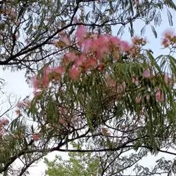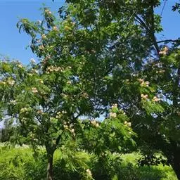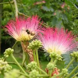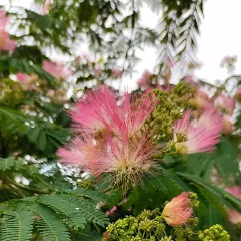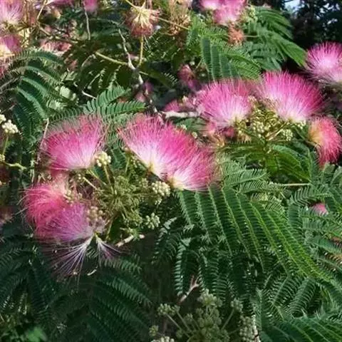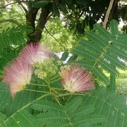 山槐叶形雅致,盛夏绒花红树,色泽艳丽,可作为庭荫树,或丛植成风景林。