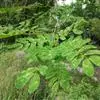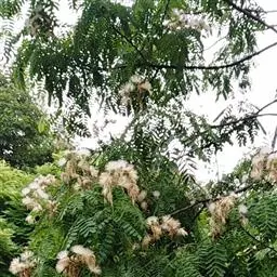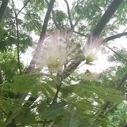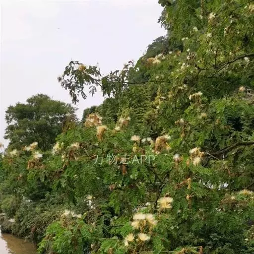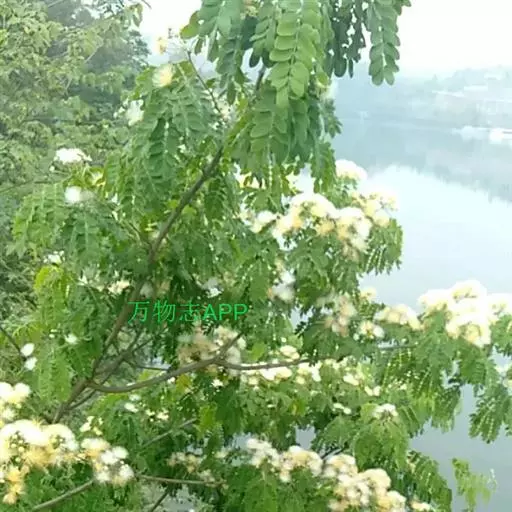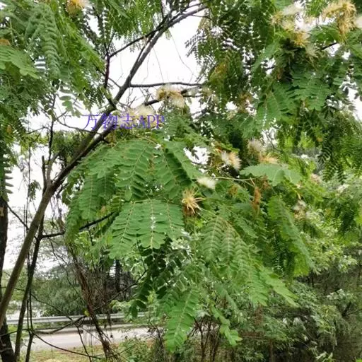 山槐,属中等乔木,通常高3-8米。枝条暗褐色,被短柔毛,有显著皮孔。二回羽状复叶,有羽片2-4对,小叶先端圆钝而有细尖头,两面均被短柔毛,中脉稍偏于上侧。花白色,花冠密生短柔毛。荚果扁平,深褐色,疏生短柔毛。花期6-7月,果熟期8-9月。 [1-2]