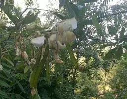 果:荚果带状,长7-17厘米,宽1.5 -3厘米,深棕色,嫩荚密被短柔毛,老时无毛。种子4-12颗,倒卵形。果期8-10月。