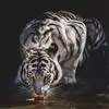 虎的体态雄伟,毛色绮丽,头圆,吻宽,眼大,嘴边长着白色间有黑色的硬须,长达15厘米左右。颈部粗而短,几乎与肩部同宽,肩部、胸部、腹部和臀部均较窄,呈侧扁状,四肢强健,犬齿和爪极为锋利,嘴上长有长而硬的虎须,全身底色橙黄,腹面及四肢内侧为白色,背面有双行的黑色纵纹,尾上约有10个黑环,眼上方有一个白色区。