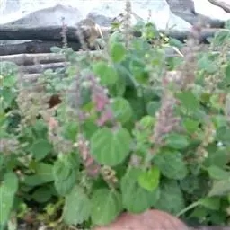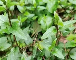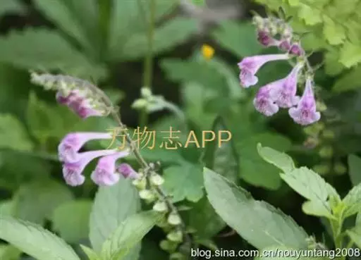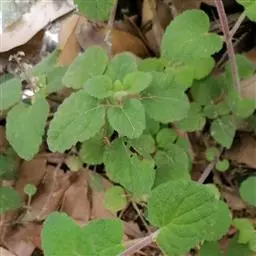 叶草质,卵圆形或三角状卵圆形,长1.4-4.7厘米,宽1.2-3.5厘米,先端锐尖至钝,有时圆形,基部截形,截状楔形至近圆形,边缘具浅而钝的2-10对牙齿,两面疏被伏贴的小柔毛,下面以沿各脉上较密,侧脉3-4对,斜上升,与中脉在上面不明显下面突出;叶柄长(0.3)0.5-2厘米,疏被上曲的小柔毛。