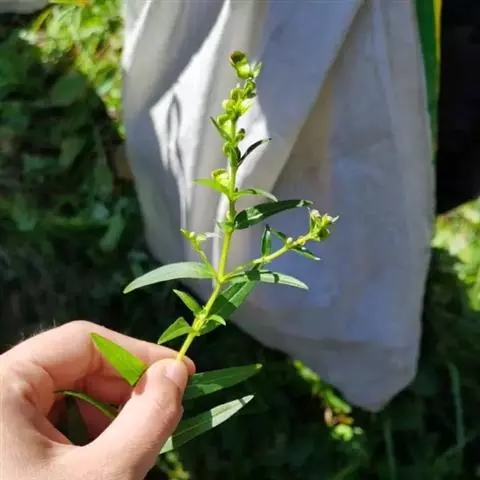 茎高24-40厘米,直立,四棱形,粗0.8-1.5毫米,绿色,基部通常带紫色,不分枝或分枝,疏被上曲的白色小柔毛,以茎上部者较密。