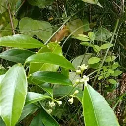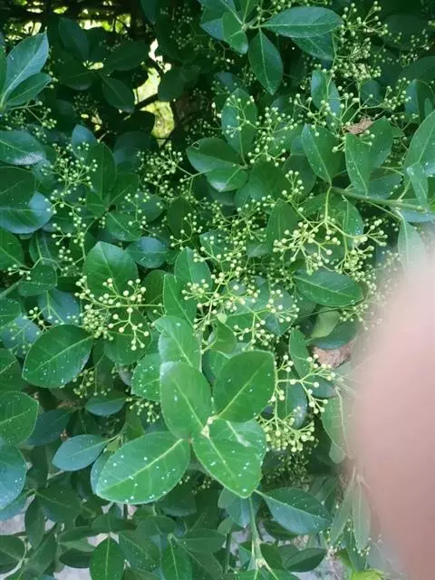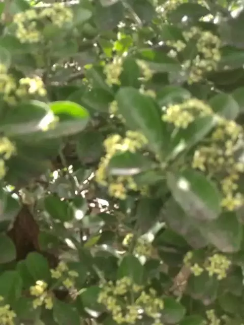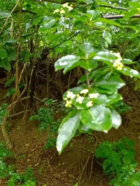 常绿灌木或小乔木,高达8米。 叶光亮革质,倒卵形或窄长椭圆形,长3-6厘米,宽2-3厘米。 聚伞花…