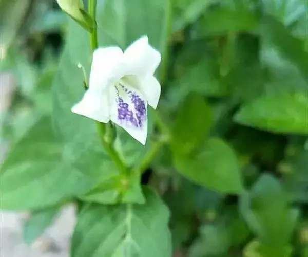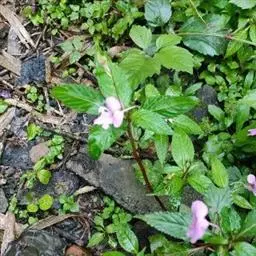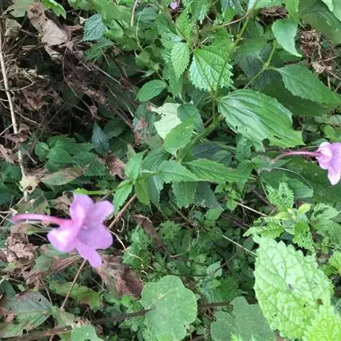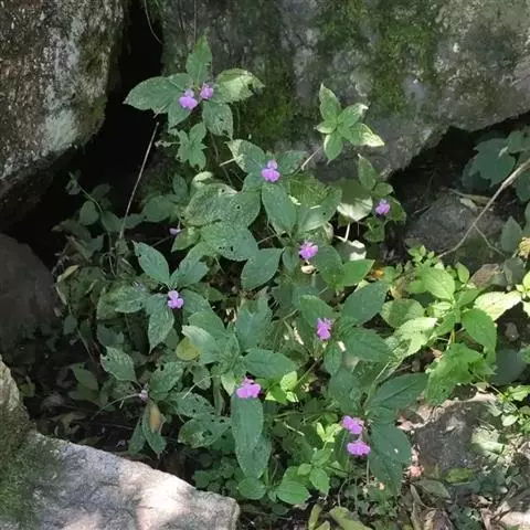 多年生草本,外倾,叶具叶柄,椭圆形,基部急尖,钝,圆或近心形,几全缘,长3-12厘米,宽1-4(-6)厘米,两面稀疏被短毛,上面钟乳体点状,总状花序顶生,花序轴4棱,棱上被毛,较明显,花偏向一侧。苞片对生,三角形,长5毫米,疏被短毛;小苞片2,似苞片,着生于花梗基部,长2毫米;花梗约长3毫米,无毛;花萼长7毫米,5深裂,仅基部结合,裂片披针形,线形,长5-6毫米,被腺毛。