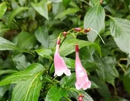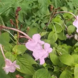 花冠短,约长2.5厘米,略两唇形,外面被疏柔毛;花冠管基部圆柱状,长约12毫米,上唇2裂,裂片三角状卵形,先端略尖,长约5毫米,下唇3裂,裂片长卵形,椭圆形,中裂片长约9毫米,侧裂片7毫米,中裂片两侧自喉部向下有2条褶襞直至花冠筒下部,褶襞密被白色柔毛,并有紫红色斑点;雄蕊4,花丝无毛,每边一长一短,在基部两两结合成对,花药紫色,背着,长圆形,2室不等高,基部具短尖头;花柱约长12毫米,基部被长柔毛,子房约长3毫米,密被长柔毛,具杯状花盘,花盘多少钝圆,5浅裂。