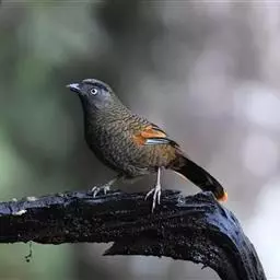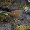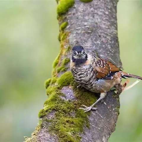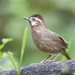 大噪鹛:中型鸟类,体长32-36厘米。额至头顶黑褐色,背栗褐色满杂以白色斑点,…