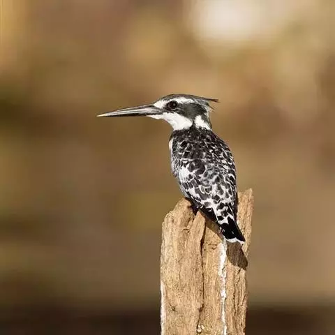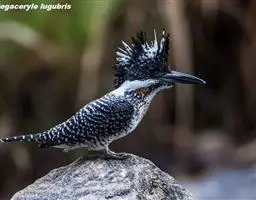 斑鱼狗(学名:Ceryle rudis),是翠鸟科、鱼狗属的中型鸟类,体长27-31厘米。外形和冠鱼狗非常相似,通体呈黑白斑杂状,但体型较小,头顶冠羽较短。尾白色,具宽阔的黑色亚端斑,翅上有宽阔的白色翅带,飞翔时极明显。下体白色,雄鸟有两条黑色胸带,前面一条较宽,后面一条较窄,雌鸟仅一条胸带。白色颈环不完整,在后颈中断。具白色眉纹。
