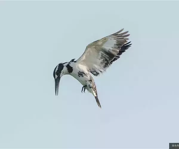 斑鱼狗雌鸟和雄鸟相似,但仅具1条胸带,且常常在中部断裂,仅胸两侧具大型黑斑。