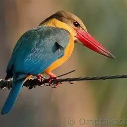 鹳嘴翡翠:体长33-37厘米。体重140-200克。共有13个亚种,体型大,嘴形巨大、侧扁,似鹳嘴…