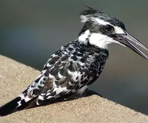 斑鱼狗的虹膜淡褐色,嘴黑色,脚、爪黑褐色。