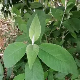 叶:叶对生,叶片厚纸质,卵形或卵状长圆形,在短枝上的为椭圆形或匙形,长1.5-20厘米,宽1-8厘米,顶端短渐尖至钝,基部宽楔形、截形或心形,边缘具波状锯齿,有时幼叶全缘;侧脉每边9-11条,均被星状绒毛覆盖;叶柄长0.5-4厘米,无翅至两侧具有被毛的长翅;叶柄间的托叶心形至半圆形,长0.3-2厘米,常被星状短绒毛。