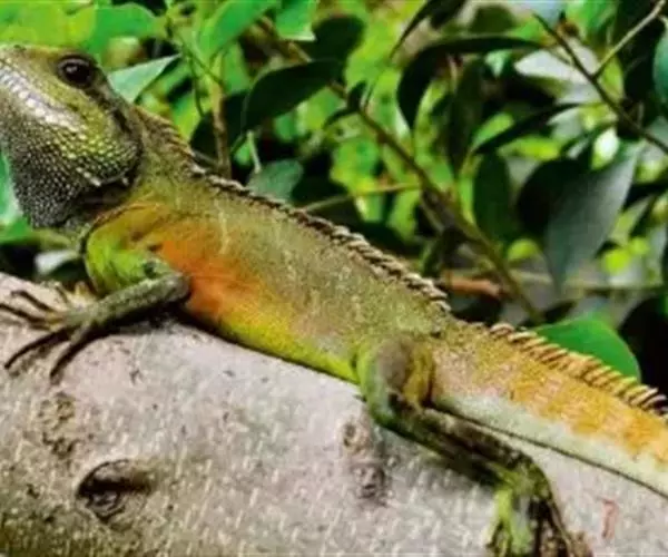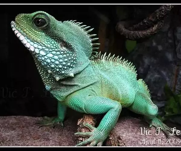 长鬣蜥(学名:physignathus cocincinus)是鬣蜥科、长鬣蜥属爬行动物。体全长702(198+504)毫米。头呈四棱锥形,头长超过头宽;顶眼清晰;吻钝圆,吻棱显著;上睫脊明显。鼻孔位于鼻鳞中央;眼大;吻鳞宽远超过吻鳞高;头背被微起棱的细粒鳞;颞部鳞片大。体上窄下宽。鬣鳞侧扁而狭长,雄蜥鬣鳞最长者超过眼眶直径。四肢发达,后肢尤为强壮,贴体前伸时,最长趾端超过眼;指(趾)外侧鳞片突出形成栉状缘,末端具爪。股孔6对。尾侧扁,尾基背面鳞片细小,向后逐渐增大;尾部鬣鳞渐次消失,有两行棱鳞形成两纵棱,与尾腹面两行棱鳞相对称。
