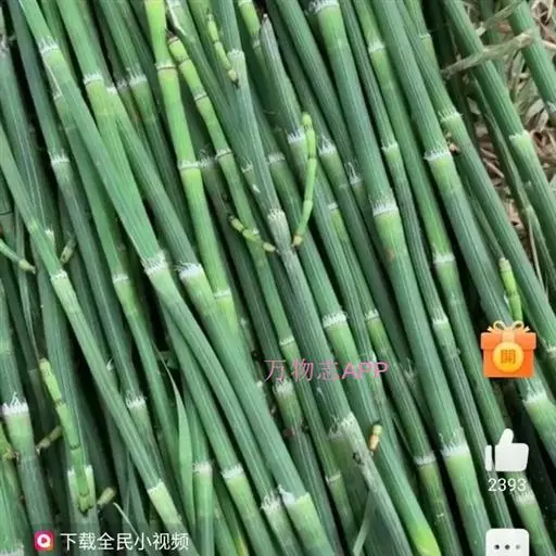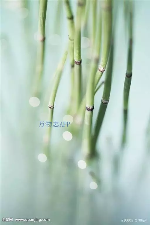 性状呈长管状,不分枝,长40-60cm,直径0.2-0.7cm。表面灰绿色或黄绿色,有18-30条纵棱,棱上有多数细小光亮的疣状突起;节明显,节间长2.5-9cm,节上着生筒状鳞叶,叶鞘基部和鞘齿黑棕色,中部淡棕黄色。体轻,质脆,易折断,断面中空,周边有多数圆形的小空腔。气微,味甘淡、微涩,嚼之有沙粒感。