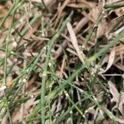 木贼(学名:Equisetum hyemale L.),别称:千峰草、锉草、笔头草、笔筒草、接骨草、马人参等。多年生常绿草本,高30-100厘米。根状茎粗短,黑褐色,横生地下,节上生黑褐色的根。地睛茎直立,单一或仅于基部分枝,直径6-8毫米,中空,有节,表面灰绿色或黄绿色,有纵棱沟壑0-30条,粗糙。