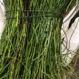 药用为木贼科植物木贼的全草,木贼味甘、苦,性平。归肺、肝经,具有疏散风热、明目退翳、止血的功效。木贼夏季采收,除去杂质,晒干或阴干贮藏,药用炮制: 除去枯茎及残根,喷淋清水,稍润,切段,干燥。切断段。