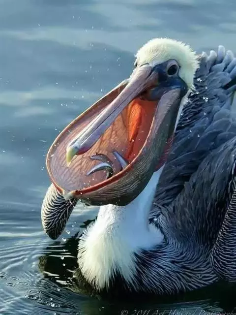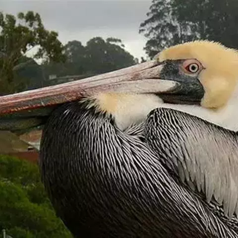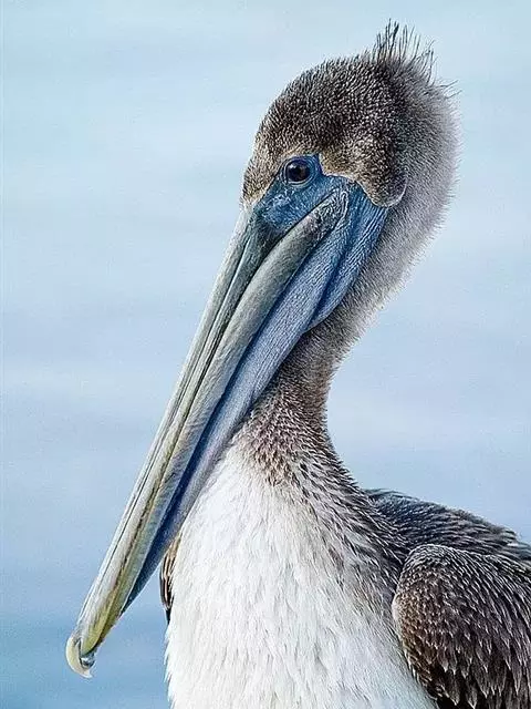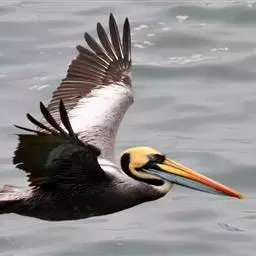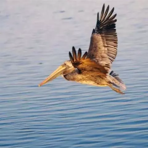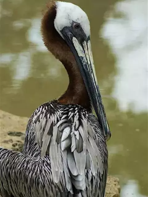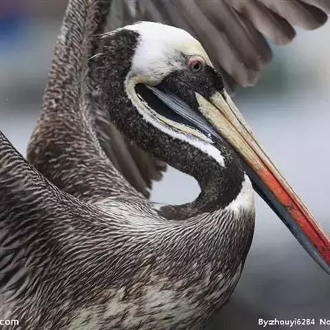 褐鹈鹕:是鹈鹕家族中体型最小的成员。体型粗大,体重6.5-9千克。嘴形宽大直长,上嘴尖端朝下弯曲,…