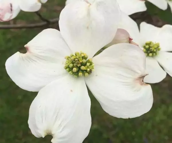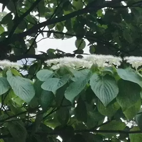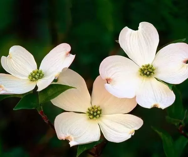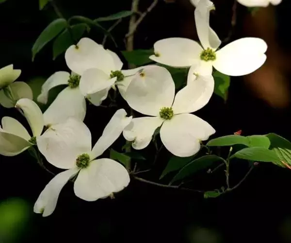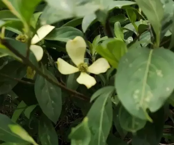 头状花序近球形,生于小枝顶端,具20-30朵花;花序总苞片4枚,长达5厘米,花瓣状,卵形或卵状披针形,乳白色。花萼筒状;花盘垫状。雄蕊4,子房2室。果球形,紫红色;总果柄纤细,长5.5-6.5厘米,果实直径1.5-2.5厘米。花期5-6月,果期8-10月。