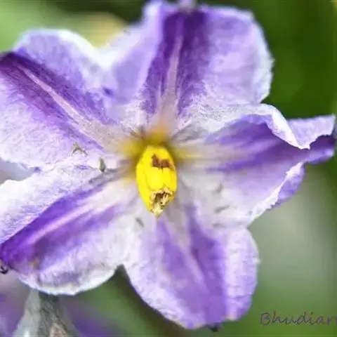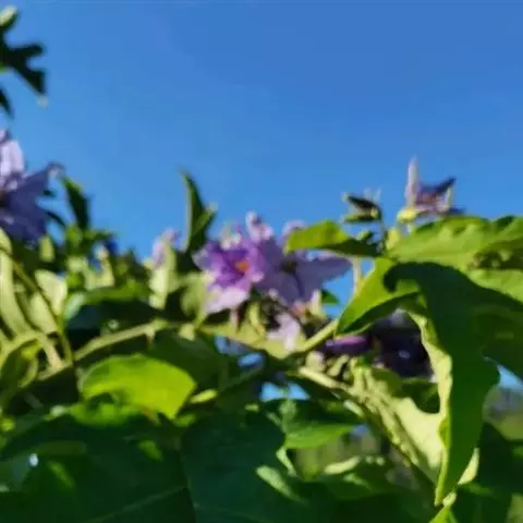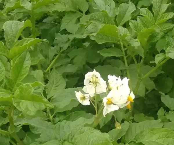 阳芋(学名:Solanum tuberosum L.)是茄科,茄属草本植物,高可达80厘米,无毛或被疏柔毛。地下茎块状,扁圆形或长圆形,叶为奇数不相等的羽状复叶,小叶常大小相间,卵形至长圆形,叶片最大可长6厘米,伞房花序顶生,花白色或蓝紫色;萼钟形,裂片披针形,花冠辐状,子房卵圆形。浆果圆球状,花期夏季。