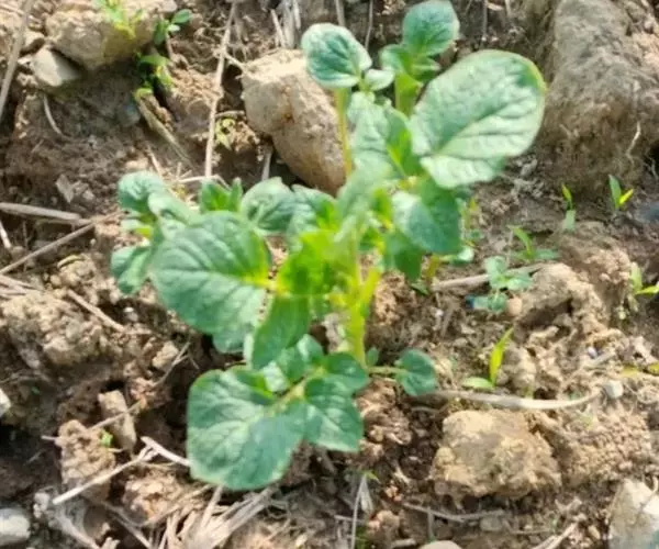 阳芋 ⒈查苗补苗:阳芋出齐后要及时进行查苗,有缺苗的及时补苗,以保证全苗。播种时将多余的薯块密植于田间地头,用来补苗。补苗时,缺穴中如有病烂薯,要先将病薯和其周围土挖掉再补苗。土壤干旱时,应挖穴浇水且结合施用少量肥料后栽苗,以减少缓苗时间,尽快恢复生长。
