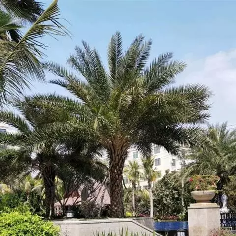 加那利海枣是棕榈科刺葵属植物,单干直立,自然高度可达18米,干径50-90厘米,幼时被以枯叶,…
