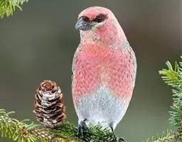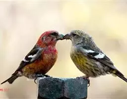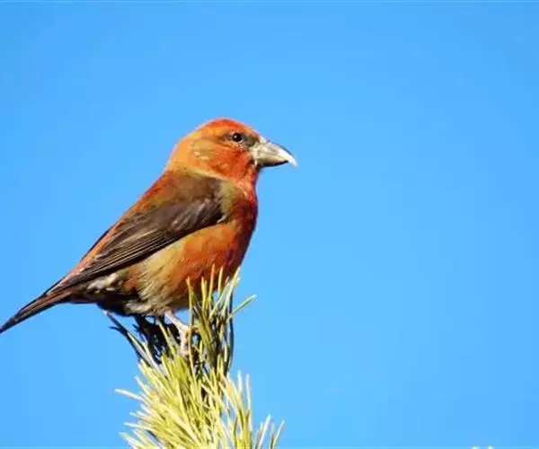 交嘴雀的翅膀和尾巴是黑褐色的,身体其他部分是美丽的红色,交嘴雀的嘴长相奇特,上下嘴不能像其他鸟类那样合在一起,而是互相交叉着,而且嘴尖分别向上下伸出来很长。